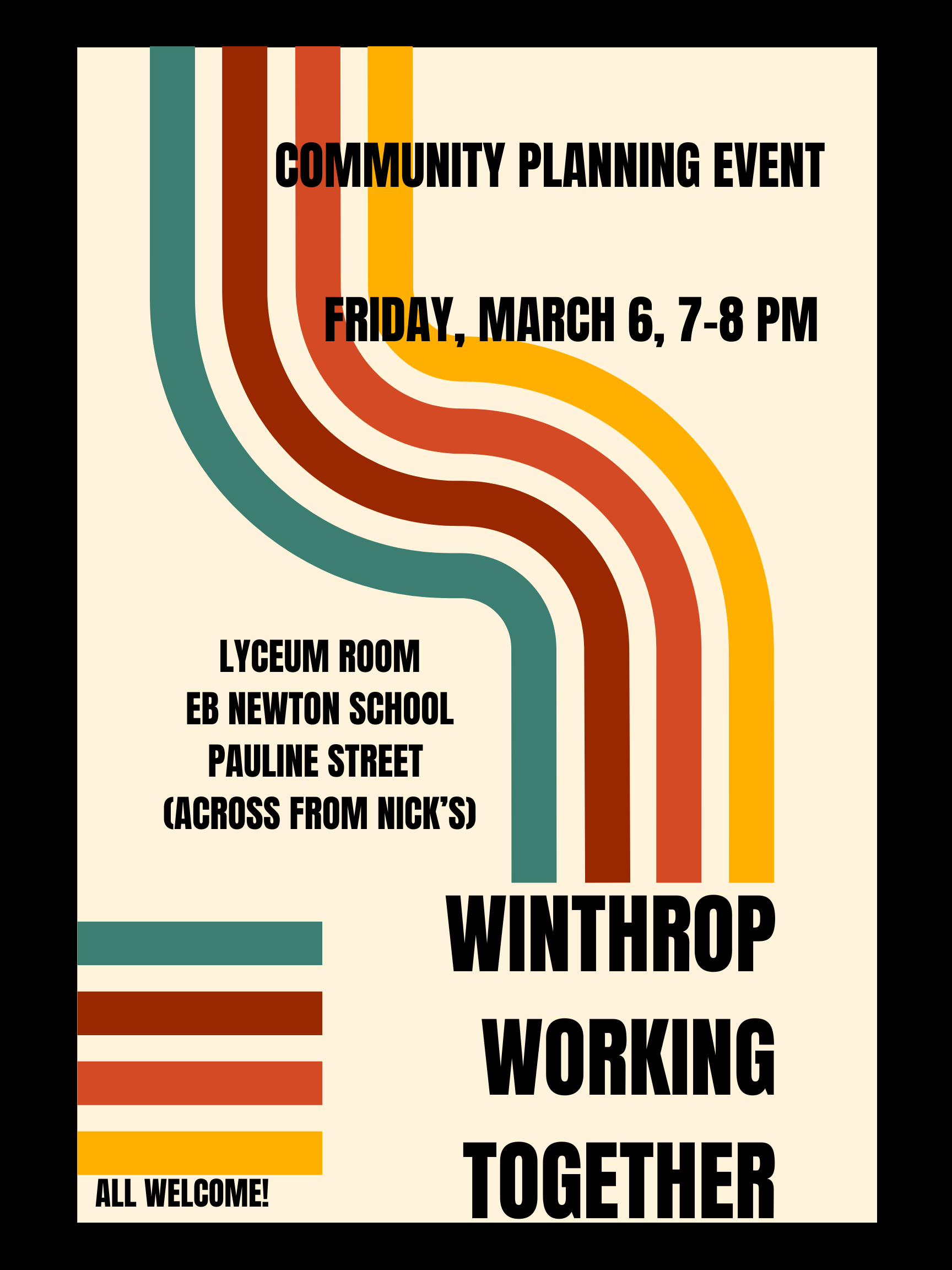We aim to create opportunities for people in Winthrop to access resources and information about the paramount issues facing our community and to engage in open, respectful dialogue and collaboration towards addressing them.
